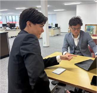 A:何でも気軽に相談できる、頼りになる先輩方が揃っています。常にしっかりと見守ってくださっているので、安心して業務に取り組めています。